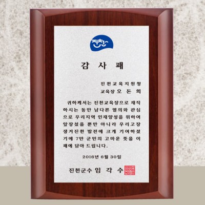 진천군수 감사패 제작 재직기념패 기념패 퇴직