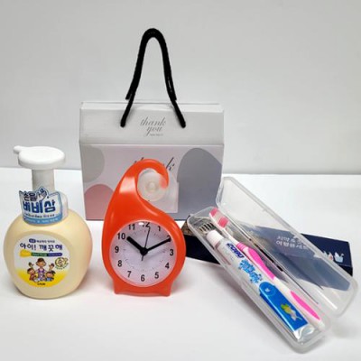 선물세트 7종 핸드워시 치약 칫솔 흡착시계